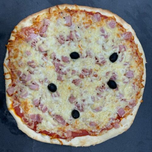 Tomate, fromage, gorgonzola, talegio, scamorza fumée, origan, olives